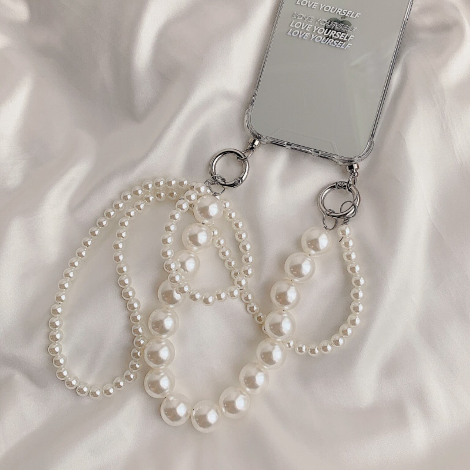 iPhoneケース iPhone13 iPhone12 クリアケース パールチェーン ストラップ 英字 英語 おしゃれ 2008