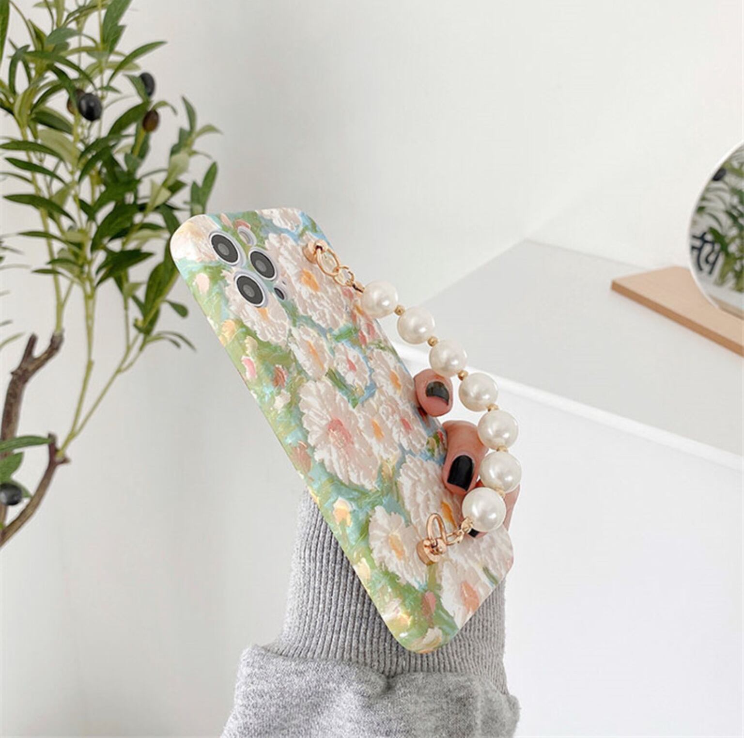 iPhoneケース iPhone13 iPhone12 キーリング パールチェーン 花柄 大人っぽい 2016