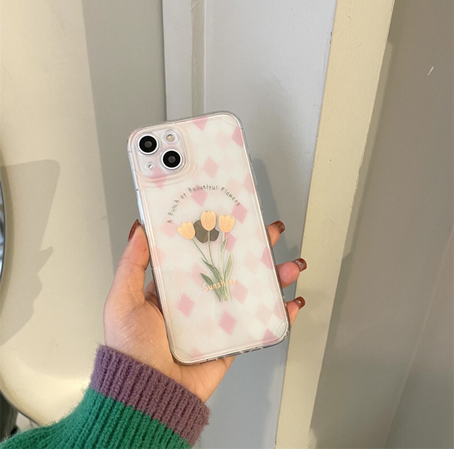 iPhoneケース iPhone13 iPhone12 クリアケース 花柄 ダイヤ 菱形 アーガイル かわいい 2132