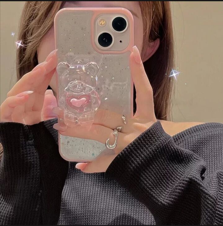 iPhoneケース iPhone13 iPhone12 グリップ付 クリアケース くま グリッター スケルトン ラメ 1205