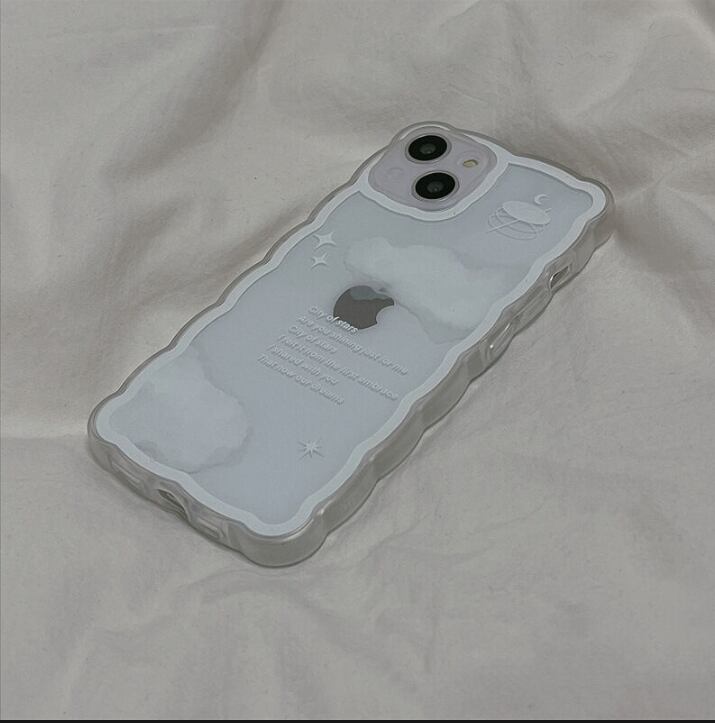 iPhoneケース iPhone13 iPhone12 クリアケース 雲 空 宇宙 もこもこ 英字 英語 英文 おしゃれ 1214