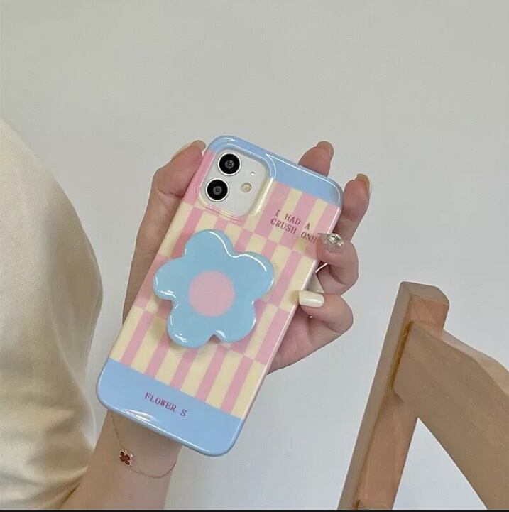 iPhoneケース iPhone13 iPhone12 グリップ付 花 パステル シンプル 1258