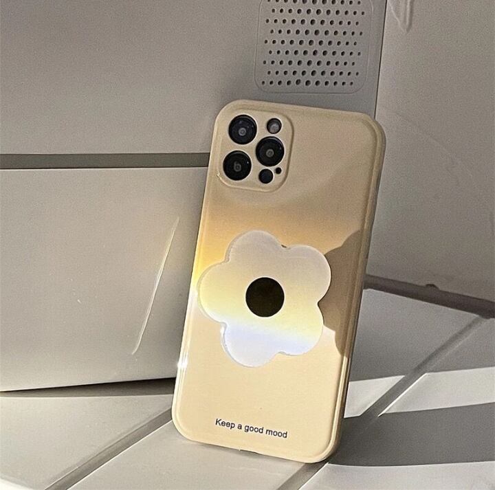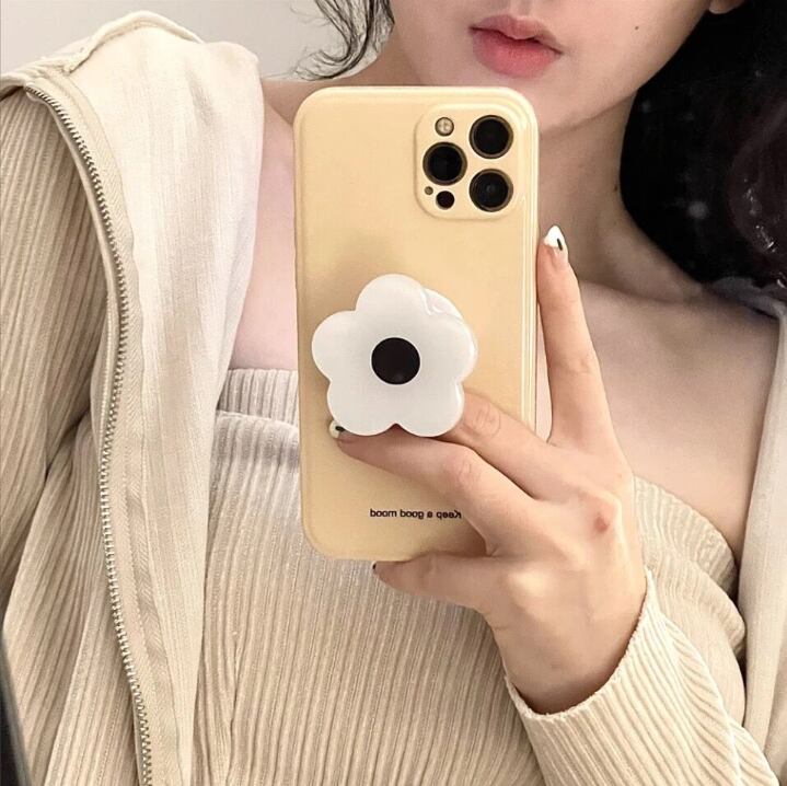 iPhoneケース iPhone13 iPhone12 グリップ付 花 フラワー クリーム 英字 英語 1337