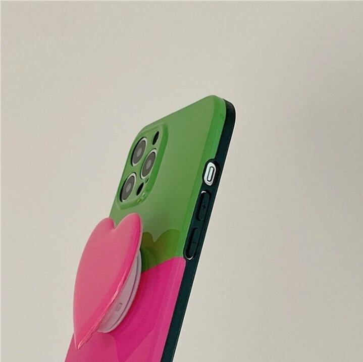 iPhoneケース iPhone13 iPhone12 グリップ付 ハート ピンク グリーン ビタミンカラー 1339