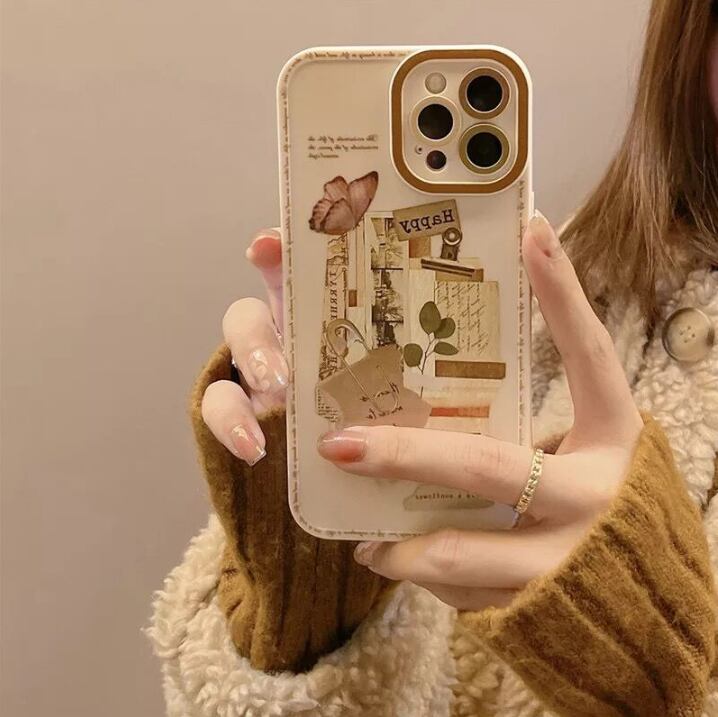 iPhoneケース iPhone13 iPhone12 ちょうちょ アート ペーパー ピン HAPPY 英字 英語 1344