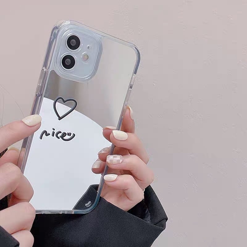 iPhoneケース iPhone13 iPhone12 ミラーケース ハート ナイス にこちゃん スマイル シンプル 2173