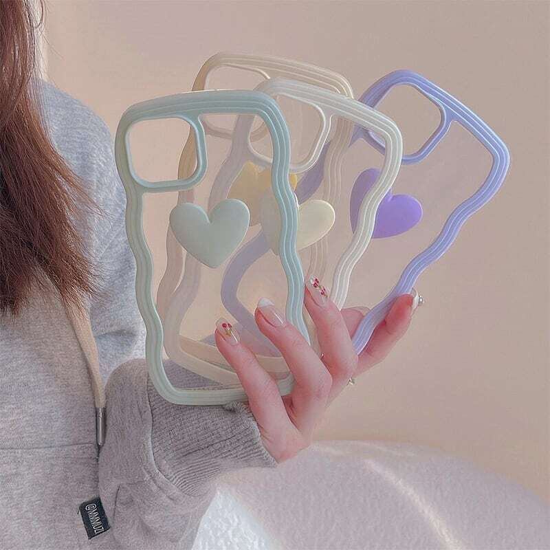 iPhoneケース iPhone13 iPhone12 クリアケース ウェーブ 波 ハート シンプル パステルカラー 韓国 おしゃれ かわいい 2196