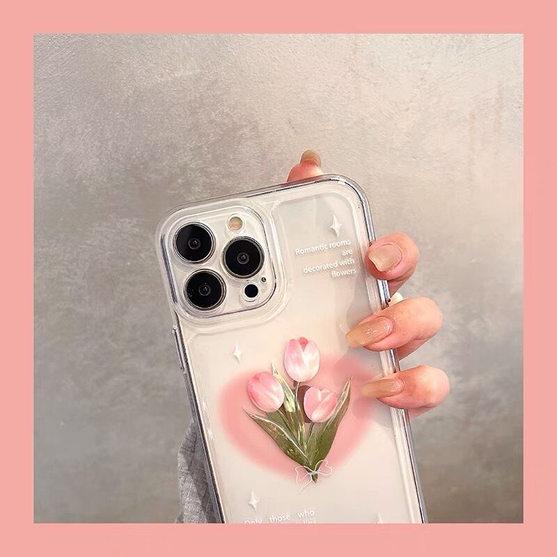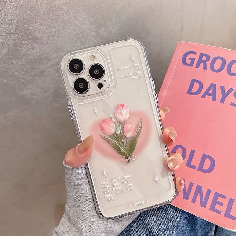 iPhoneケース iPhone14 iPhone13 クリアケース 花柄 チューリップ 英字 英語 かわいい スマホケース おしゃれ 韓国 2279
