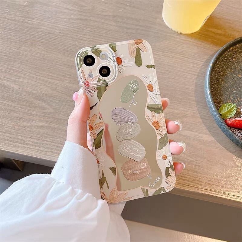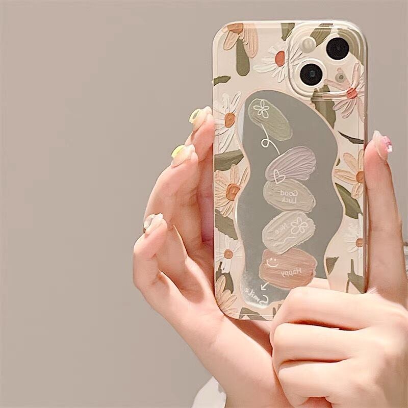 iPhoneケース iPhone14 iPhone13 花柄 油絵風 ミラー にこちゃん スマホケース おしゃれ 韓国 2318