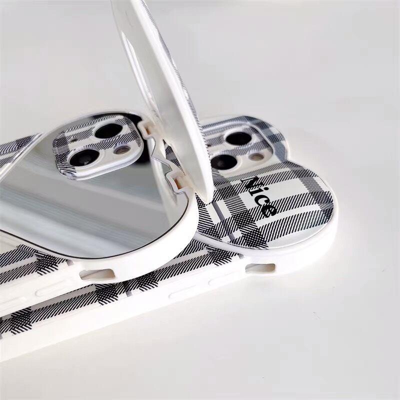 iPhoneケース iPhone14 iPhone13 ミラー付き ハート 便利 英字 チェック モノトーン かわいい スマホケース おしゃれ 韓国 2343