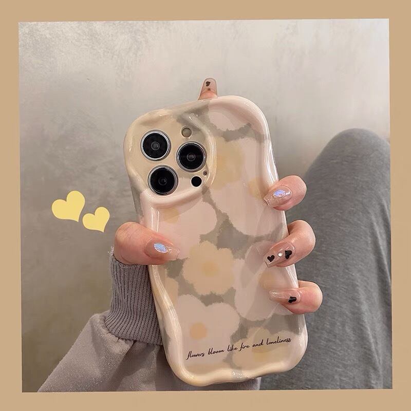 iPhoneケース iPhone14 iPhone13 ウェーブ 花柄 パステルカラー 春 かわいい スマホケース おしゃれ 韓国 2405