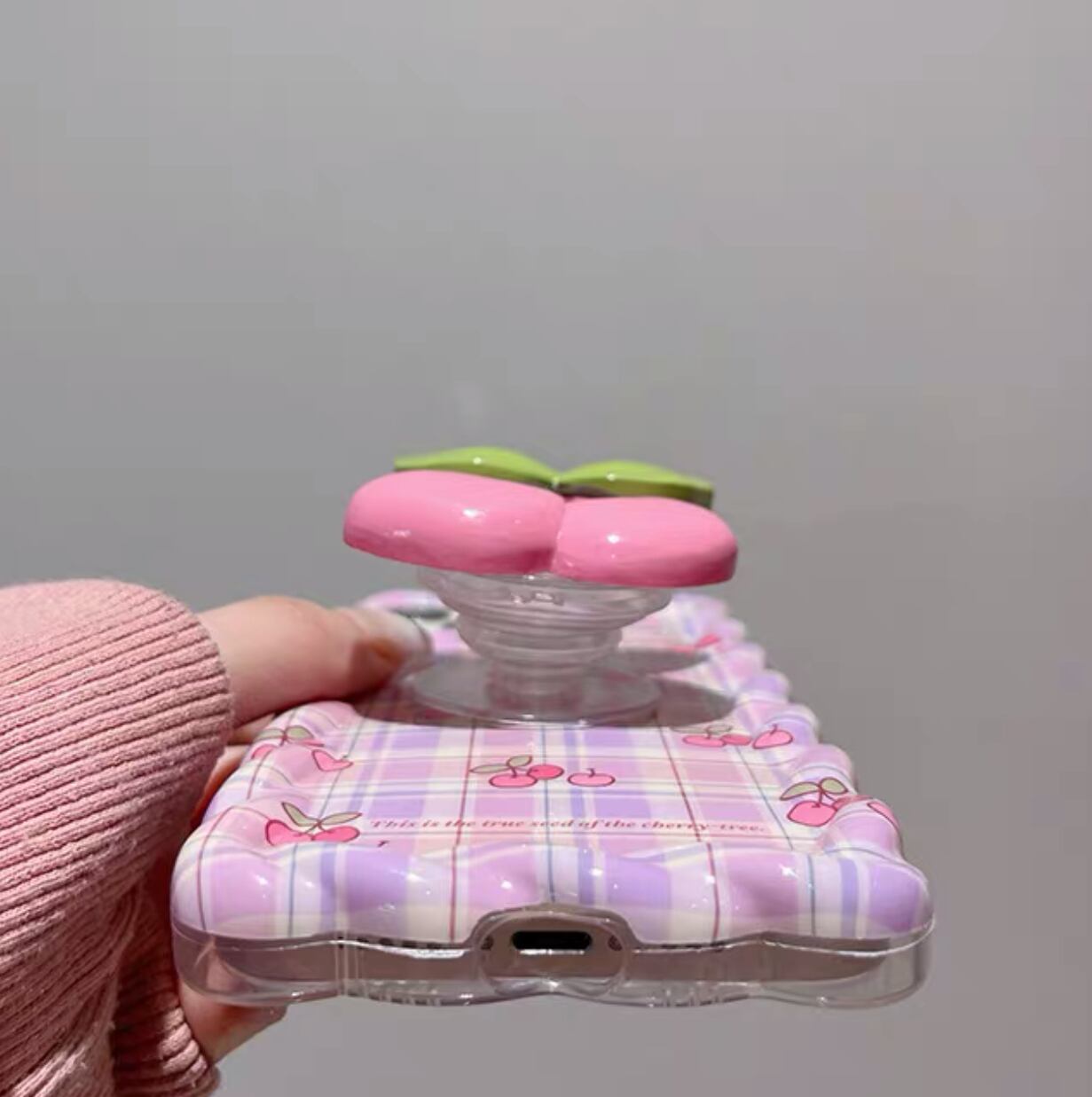 iPhoneケース iPhone14 iPhone13 ツイスト さくらんぼ グリップ付き 春 かわいい スマホケース おしゃれ 韓国 2418