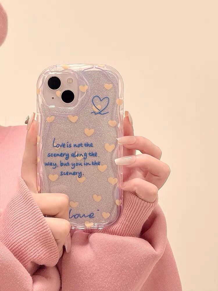 iPhoneケース iPhone14 iPhone13 ウェーブ ハート キラキラ ラメ かわいい スマホケース おしゃれ 韓国 2425