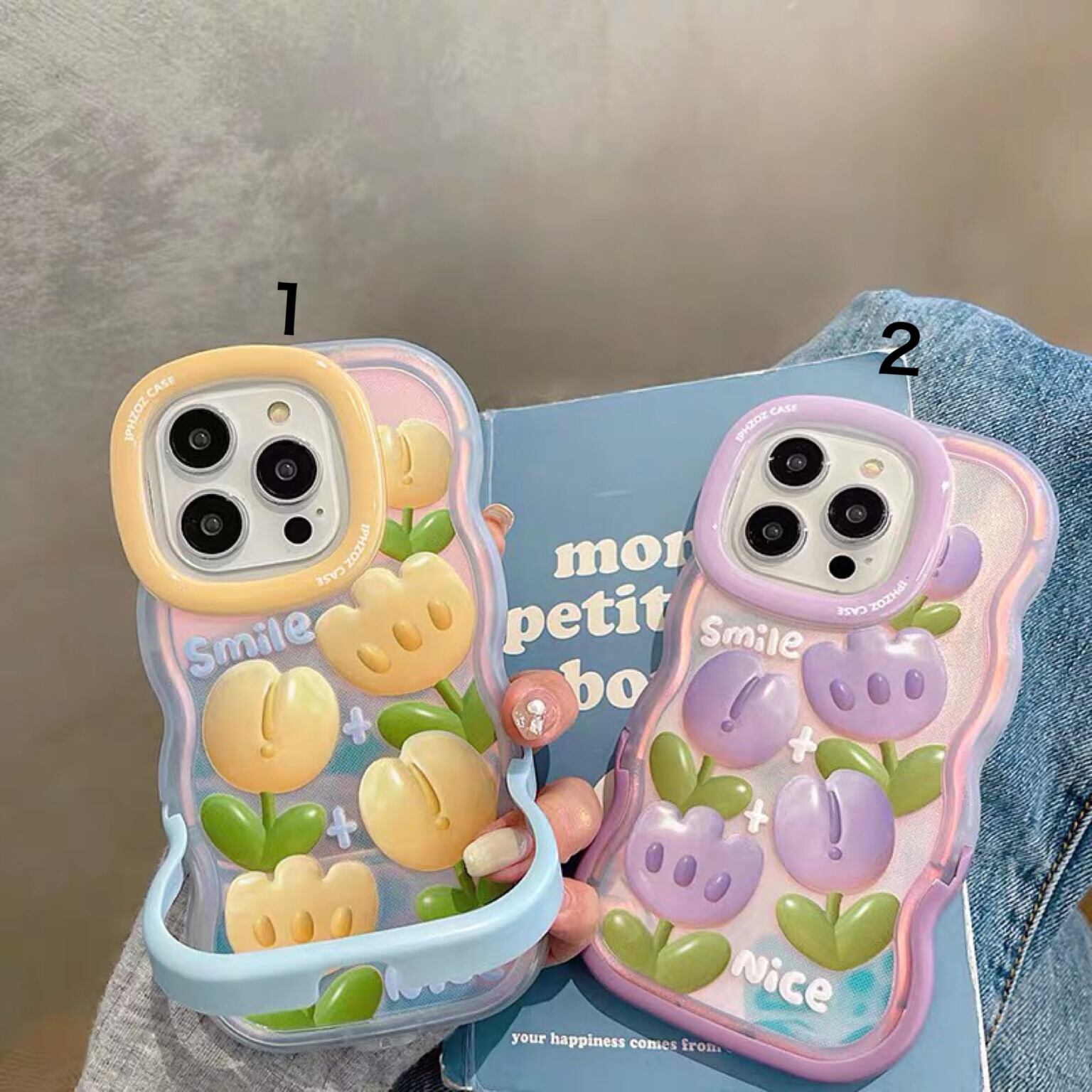 iPhoneケース iPhone14 iPhone13 スタンド付き ウェーブ 花柄 かわいい スマホケース おしゃれ 韓国 2431