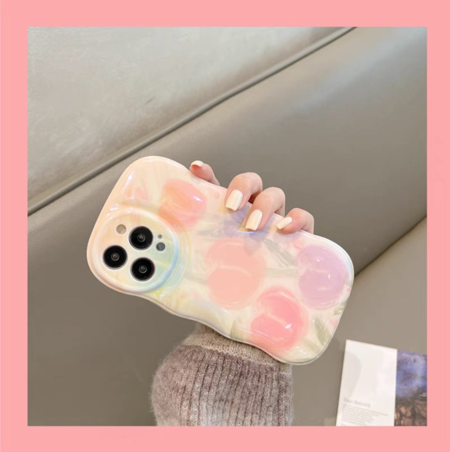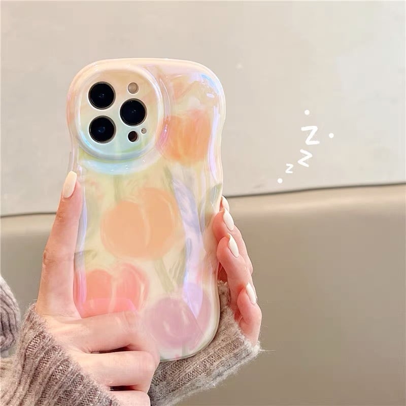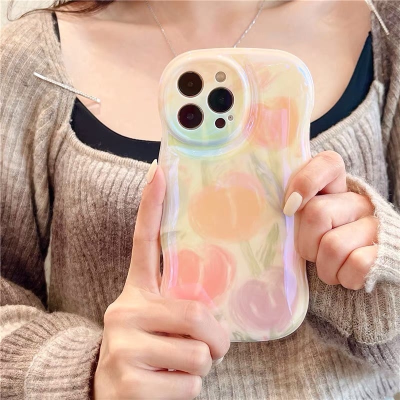 iPhoneケース iPhone14 iPhone13 ウェーブ オーロラ 花柄 チューリップ かわいい スマホケース おしゃれ 韓国 2485