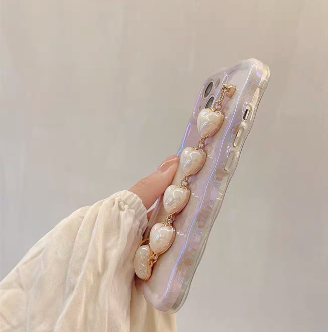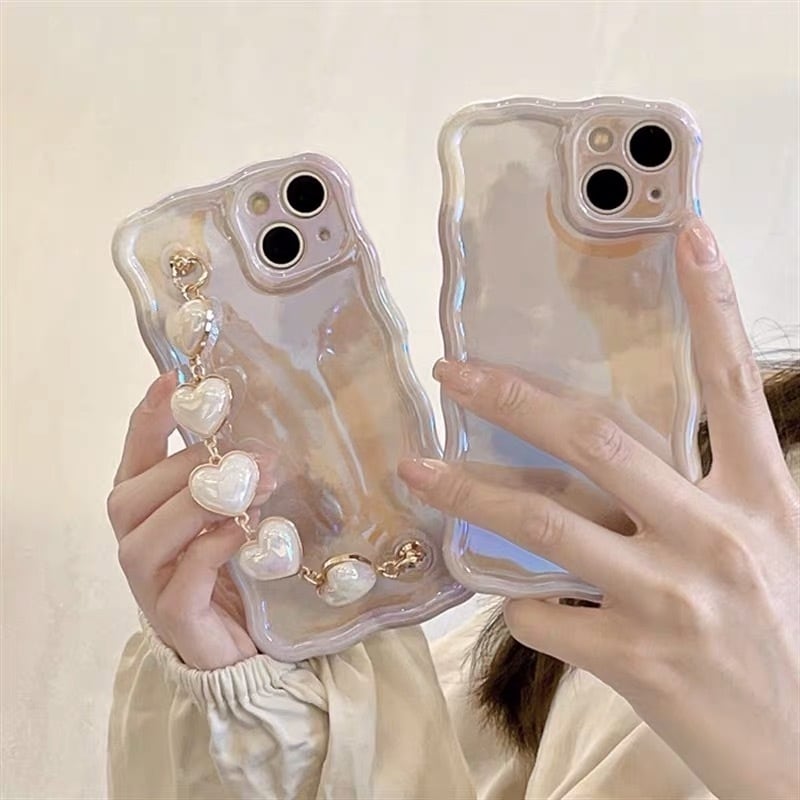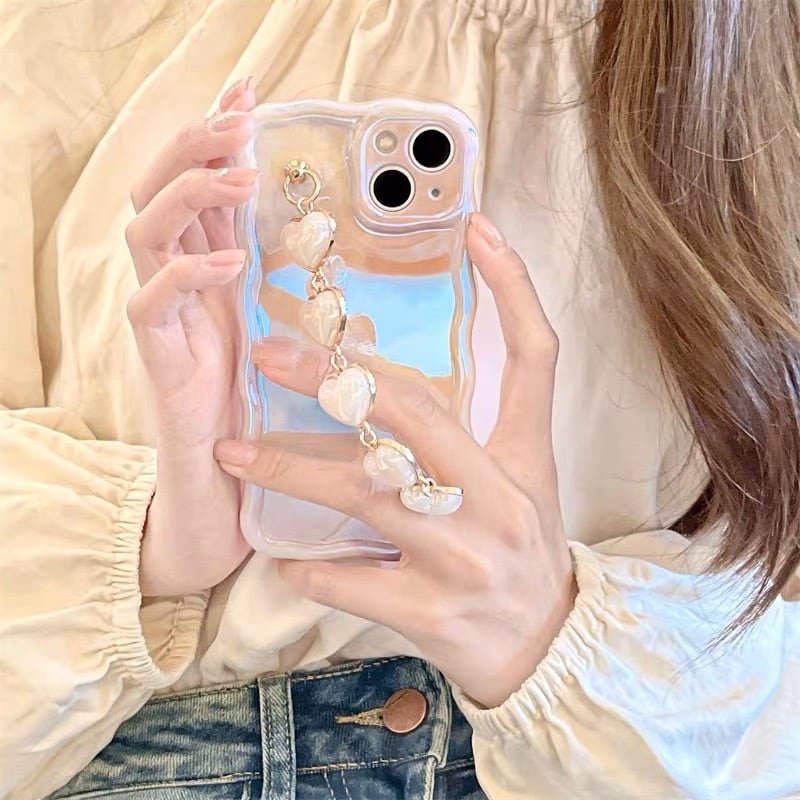 iPhoneケース iPhone14 iPhone13 キーリング ハート オーロラ加工 ウェーブ 大人っぽい キラキラ かわいい スマホケース おしゃれ 韓国 2602