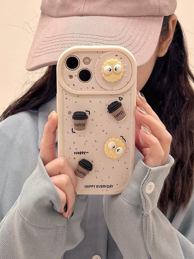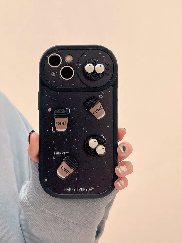 iPhoneケース iPhone14 iPhone13 カメラ保護 真っ黒くろすけ モンスター コーヒー カフェ かわいい スマホケース おしゃれ 韓国 2603