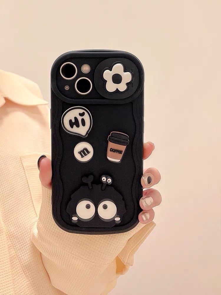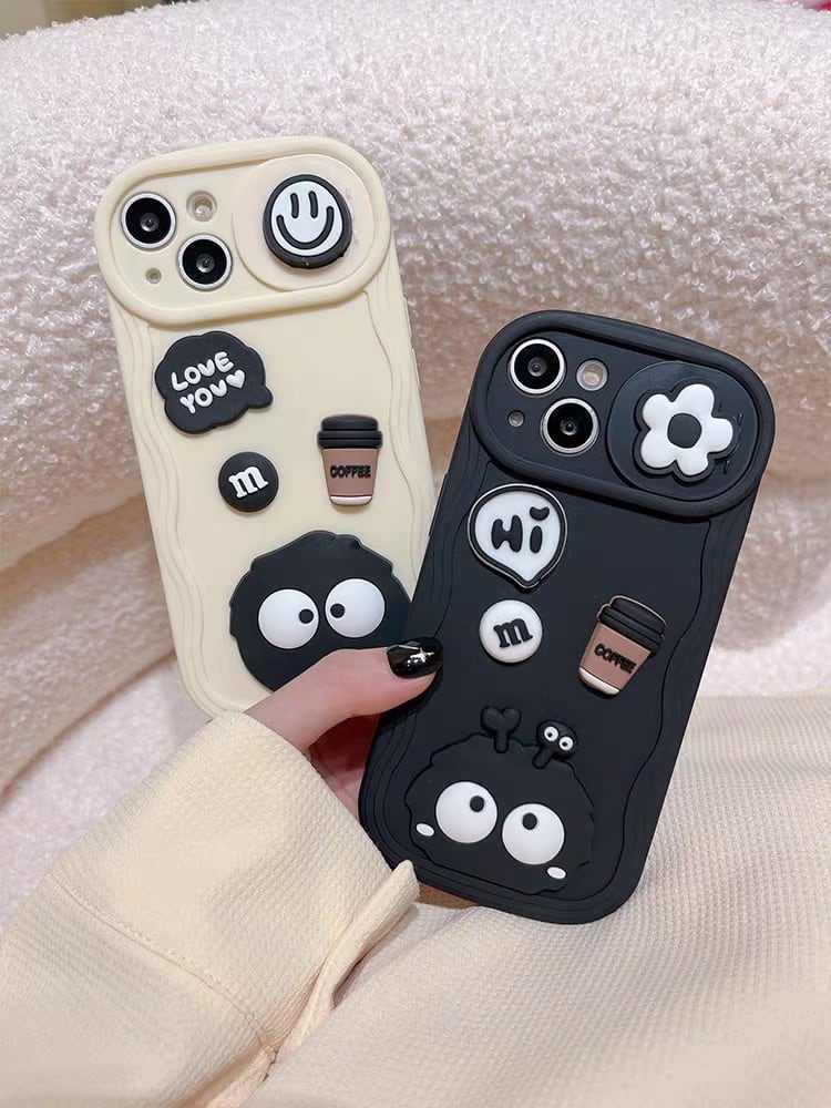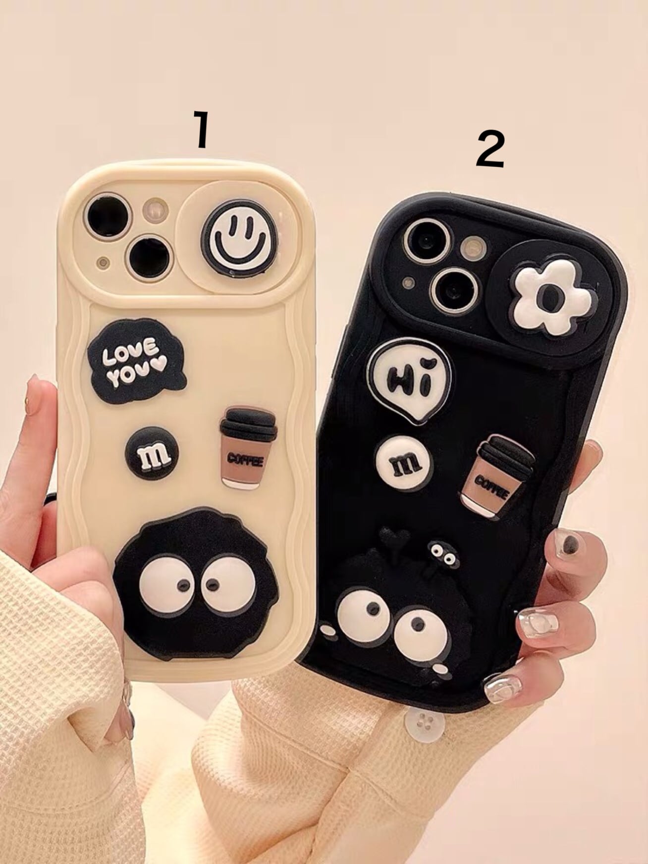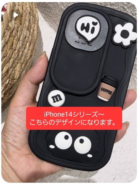 iPhoneケース iPhone14 iPhone13 カメラ保護 真っ黒くろすけ モンスター コーヒー カフェ かわいい スマホケース おしゃれ 韓国 2604