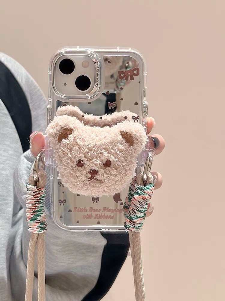 iPhoneケース iPhone15 iPhone14 ショルダーストラップ スマホショルダー くま 動物 挟む かわいい スマホケース おしゃれ 韓国 2650