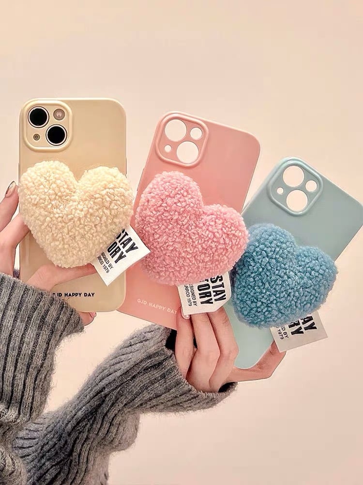 iPhoneケース iPhone15 iPhone14 グリップ付き ハート 秋冬 シンプル 推し活 推しカラー お揃い ペア スマホケース おしゃれ 韓国 2653